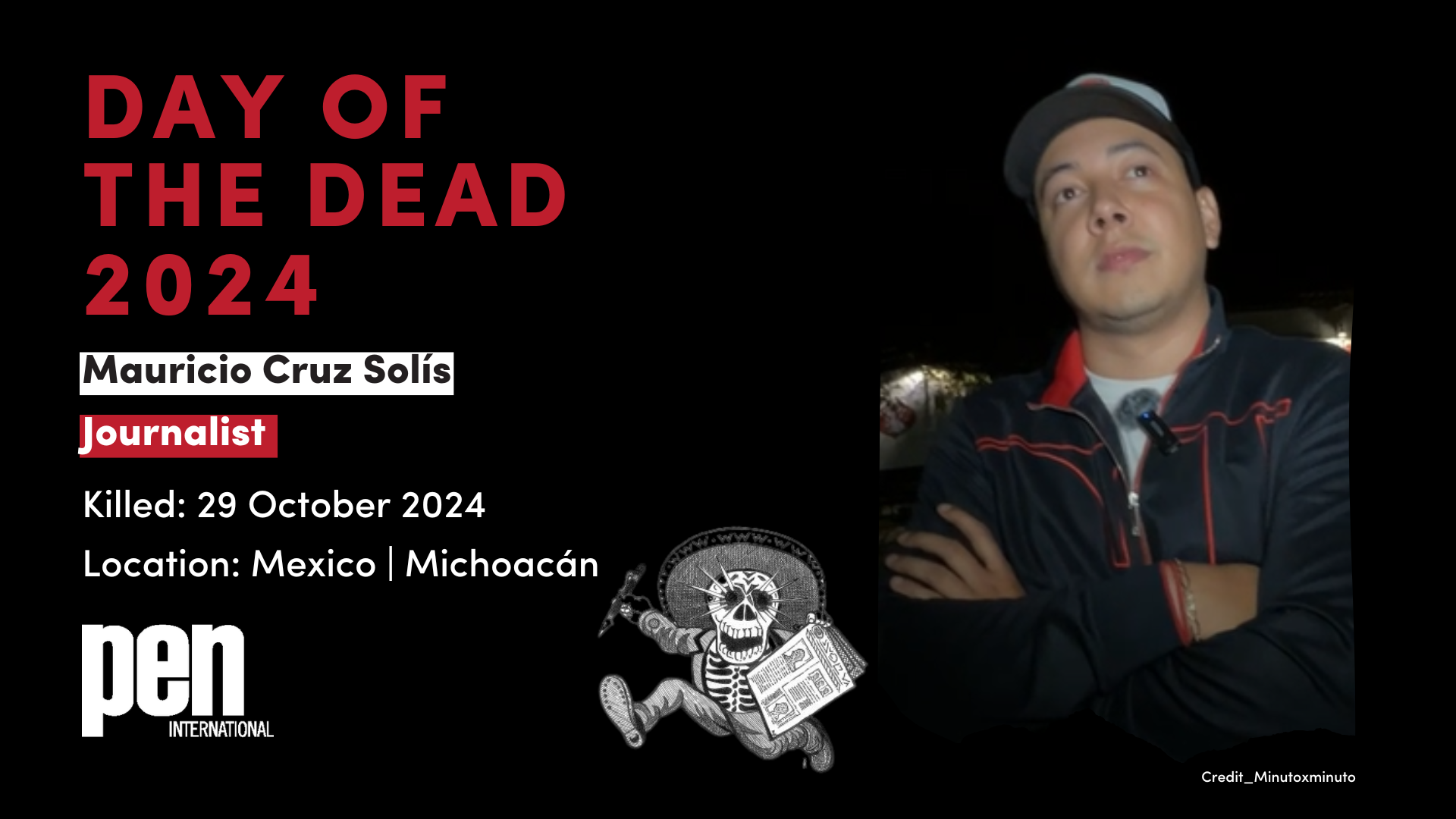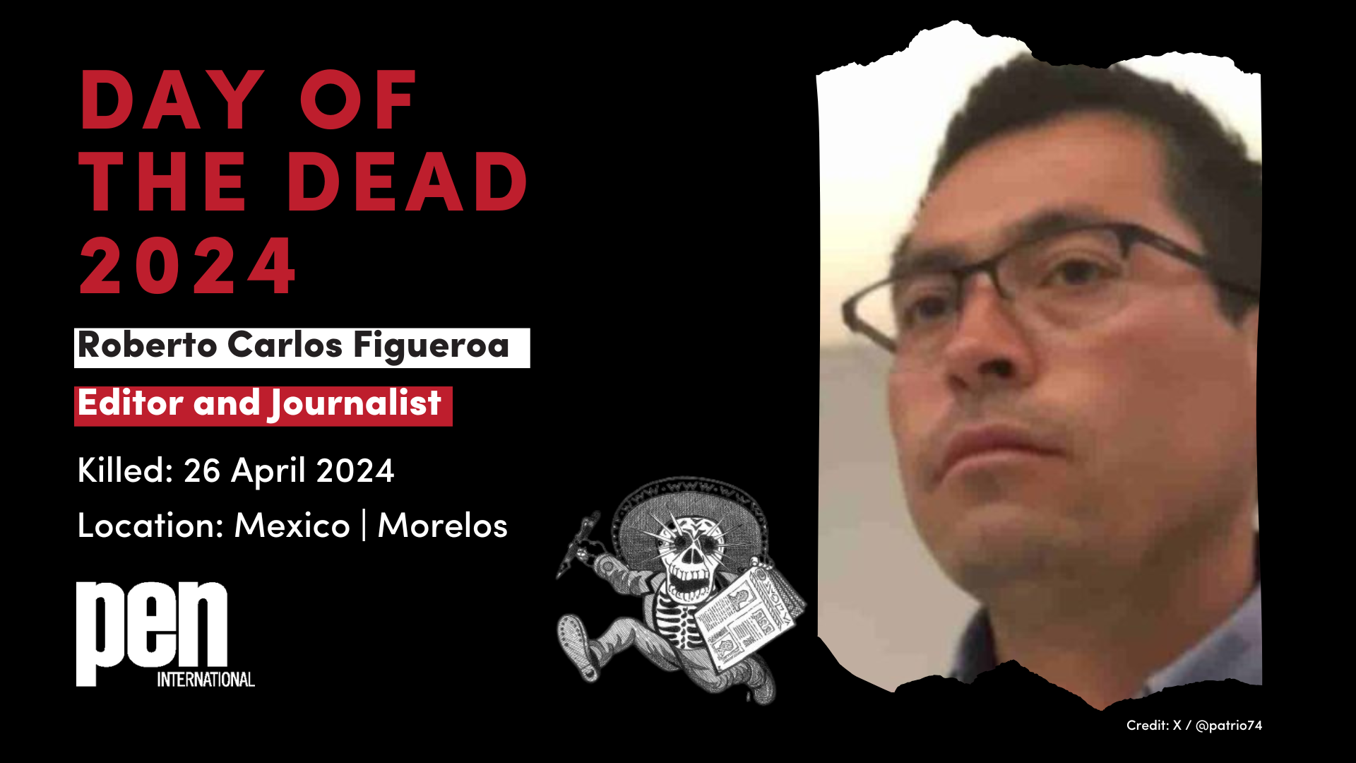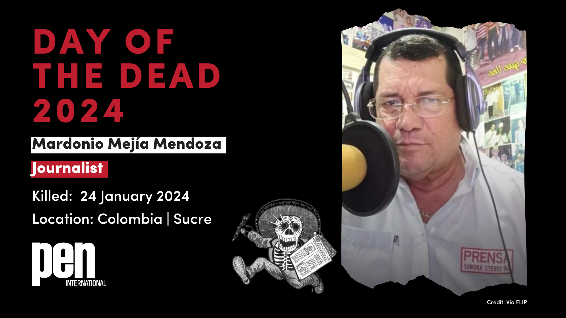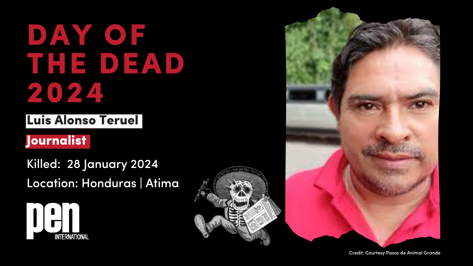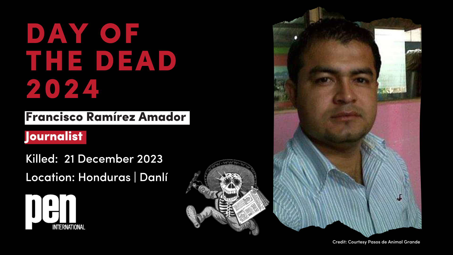 31 October 2024: PEN International launches its Day of the Dead campaign to honour journalists murdered in Latin America over the past year. Between 31 October and 13 November 2024, we will remember media editors, columnists and journalists who were killed in possible connection with their work.